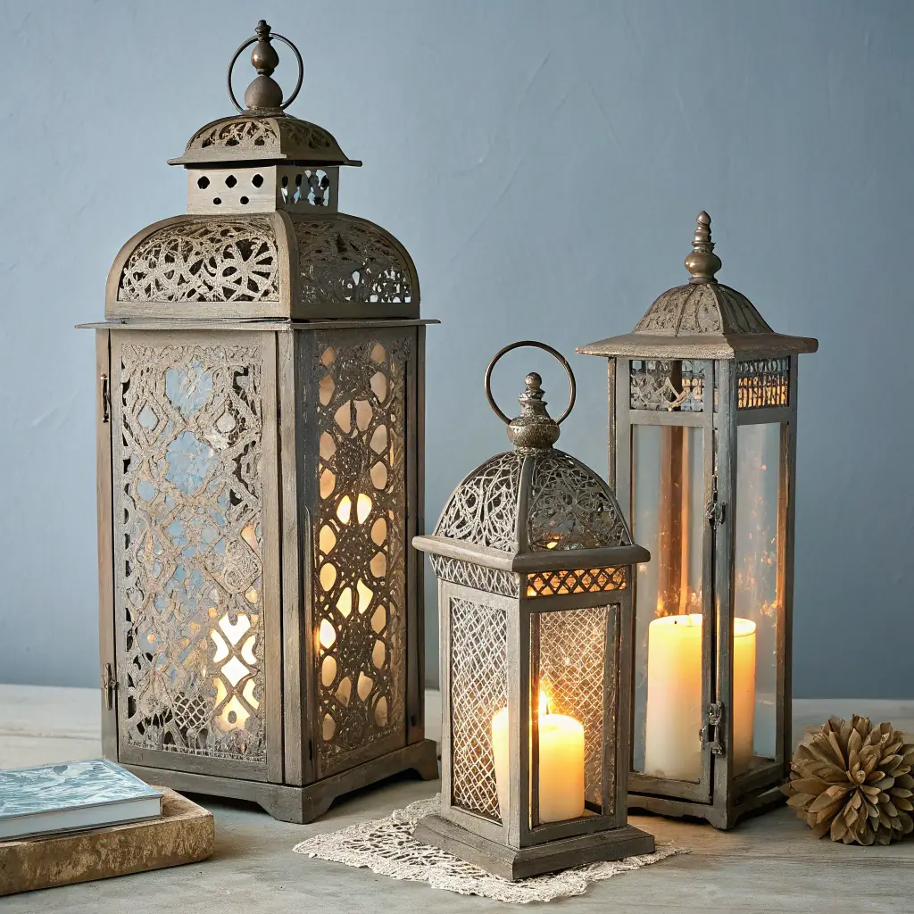 Fonctionnant sans électricité, ces lanternes peuvent accueillir des bougies naturelles, des lampes LED rechargeables ou même des lampes à huile végétale, selon vos préférences.